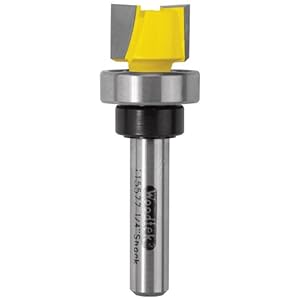 | Woodtek 115577, "bits, Router, Straight, Hinge Mortising", 1/2" Hinge Mortise Bit, 5/8" Top Bearing Dec 10th 2012, 00:54 Category: Tools & Home Improvement Vendor: Ensures Clean, Crisp Hinge, Hardware And Template Mortises. Specifications: "D"=1/2 in, "B"=5/8 in, "H"=11/32 in Specifications Product Description : Ensures clean, crisp hinge, hardware and template mortises. Woodtek? solid carbide top bearing hinge mortising router bit is perfectly suited for use with templates or shop built jigs: Rugged PTFE (polytetrafluoroethylene) Briteview? coating not only protects but the bright yellow color provides better visibility for safer operations. Micro-grain carbide cutting surfaces have been diamond honed to 800 grit for minimal tear-out and smoother surface quality. CNC-machining to +/-0. 001" tolerances and dynamic balancing help ensure vibration-free operation. Positive shear angle places less demand upon your routing equipment. Manufactured in facilities meeting stringent ISO 9000: 2000 quality assurance standards. 1/4" shank. Imported. | |