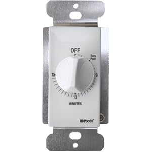 Product Description : From the ManufacturerWoods 59711 In Wall Switch Countdown Timer, 15-Minute, White Just set it and forget it! Install this unit in place of existing wall switches to bring ease to your life. It can automatically turn off bathroom fans, lights, and more. Your possibilities are endless. The unit is easy to install in place of existing wall switch, and fits standard and decorator switch plates, both single or multiple gang boxes. Automatically turns off after selected time to reduce energy costs with a max of 30 minutes. It is compatible with compact fluorescent bulbs. This unit is rated at 125Volt 60Hz, 20AMP 2400Watt Resistive 8AMP / 1000Watt Tungsten 5AMP / 625VA Fluorescent 15FLA, 90LRA Product Description : 59711 Features: -Automatically turns off after selected time.-Timer runs from zero to 15-minutes.-Easily installs in place of existing wall switch.-Fits any single or multi-gang decorator or toggle switch plate.-Automatically turns off fans, lights, motors, heaters and other energy consuming loads.-Directly wire this timer into a standard light switch (standard toggle or decorator plate).-Compatible with compact fluorescent lighting.-CSA certified for quality assurance.-15FLA, 90LRA. Specifications: -125V, 60Hz.-Resistive rating: 20A, 2500W.-Tungsten rating: 8A, 1000W.-5A, 625 VA Ballast.