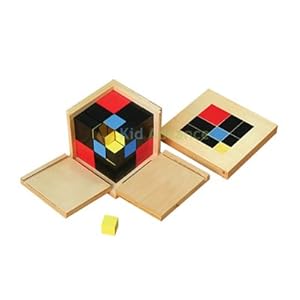 Product Description : 27 painted wooden cubes in a wooden box with a lid. The box is hinged and opens out to display the cubes. The lid is printed with the trinomial square pattern.
