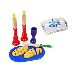 Product Description : From the ManufacturerKidKraft's Shabbat Set is a safe and joyous way to celebrate the Sabbath, while encouraging open-ended and imaginative role-play. Crafted from wood, our Shabbat Set includes: Product Description : With this wooden set, children can welcome the Sabbath every week in imaginative, pretend play. They'll love cutting the Velcro(R) connected slices of each Challah with the safe, wooden knife, placing the candles in their holders and even saying the prayer over the wine as they pretend to drink from the Kiddish Cup. All 17 wooden pieces and the cloth Challah cover store in a drawstring, fabric bag. Breadboard is 12L x 7"W Cup is 6"H. 19-pc set. Ages 3 yrs. +."