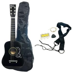 Product Description : This beautiful Acoustic Guitar set is the ideal toy for children! It is fully functional Acoustic Guitar which is perfect for "pretend" play. Please note that this toy guitar may not be tunable like an adult guitar. This Guitar is 25 inches in length and features full wood construction and a great gloss finish. This set also has everything your child needs to get started with the Guitar! The set includes a nylon gig bag, easy to use pitch pipe tuner, and extra strings. This Acoustic Guitar set makes a great gift for kids and is a great value for the money! IMPORTANT INSTRUCTION: The guitar does not come pre-tuned. Before using the guitar, we recommend tightening the screws on the tuning knobs using a screwdriver. The screws are located on the tuning knobs on the top-backside of the guitar. This will ensure that the strings stay tight.Complete 25 Inch Acoustic Toy Guitar SetPerfect Toy for Children!Full Wood ConstructionGreat Gloss FinishSet Includes: Nylon Gig Bag, Pitch Pipe Tuner, and Extra Strings- 6 poundsManufacturer Recomended Age: 24 months - 6 years
