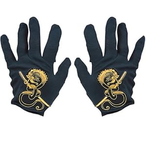 Product Description : Size: Child Std. | Color: MulticolouredNinja gloves are black, made of cloth fabric, and feature a design in gold of a dragon wrapped around a sword. Gloves measure about 8" in length.